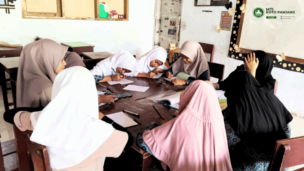 Payakumbuh — Siswa MTI Koto Panjang terus mengembangkan kreativitas melalui kegiatan ekstrakurikuler kaligrafi. Pada sesi terbaru, para siswa tampak fokus menulis kaligrafi Arab dengan bimbingan langsung dari guru pendamping di lingkungan madrasah.